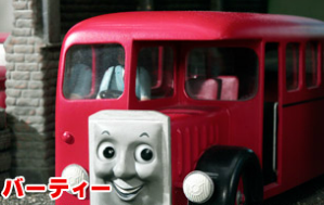 トーマスとどちらが速いか競争したこともあるバスのバーティー。今は大の仲良しです。
