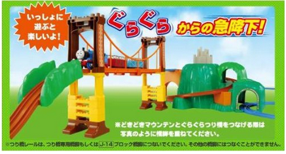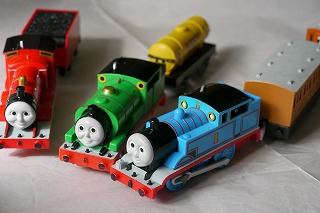 2013/10/24 Category : トーマスシリーズ トーマスのどきどきマウンテンセットがはじめての方におススメの理由 「トーマス」シリーズは、プラレールの中でもちびっこに大人気☆ 我が家の子供たちも、例外にもれずトーマスが大好き♪ トーマスやらジェームスやらゴードンやらパーシーやら、おもちゃ箱には たくさんのトーマスの仲間たちがおります。 子どもたちお気に入りの汽車たち よく、トーマスシリーズをはじめて買うのにおすすめは?と聞かれるのですが、 そんな時は「どきどきマウンテンセット」をすすめています。 セット内容を見てみると ◆きかんしゃトーマス(動力車)…1両 ◆貨車(無蓋車)…2両 ◆直線レール…4本 ◆1/2直線レール…5本 ◆曲線レール…16本 ◆マウンテン…1セット となっています。 普通のレールセットと大きく異なるのは、マウンテン(山)です。 トーマスが山をぐるぐる登っていくレイアウトを組むことが可能で、他のセットでは 決してできないレイアウトです。 山を下るトーマスのスピードは、子どもが大喜び! (トーマスのスピードは他の電車に比べ遅めなのですが、下るときは別!!) また、山のレイアウト抜きでも基本レイアウトがセットされているレールで組むことが 可能なのも魅力の一つ☆ 山のレイアウトが少々難しいので、幼稚園入園前のお子さんだと、大人が組んであげてください。 最安値は、アマゾンで¥4881(39%オフ)でした。 ⇒トーマス どきどきマウンテンセットを買うならこちら お子様が気に入れば、別セットの「ぐらぐらつり橋」とつなげて遊べるのも嬉しいですね。 ⇒プラレール トーマス ぐらぐらつり橋セットを買うならこちら ブログランキングに参加しています。 本日のランキング応援クリックありがとうございました(^-^) PR